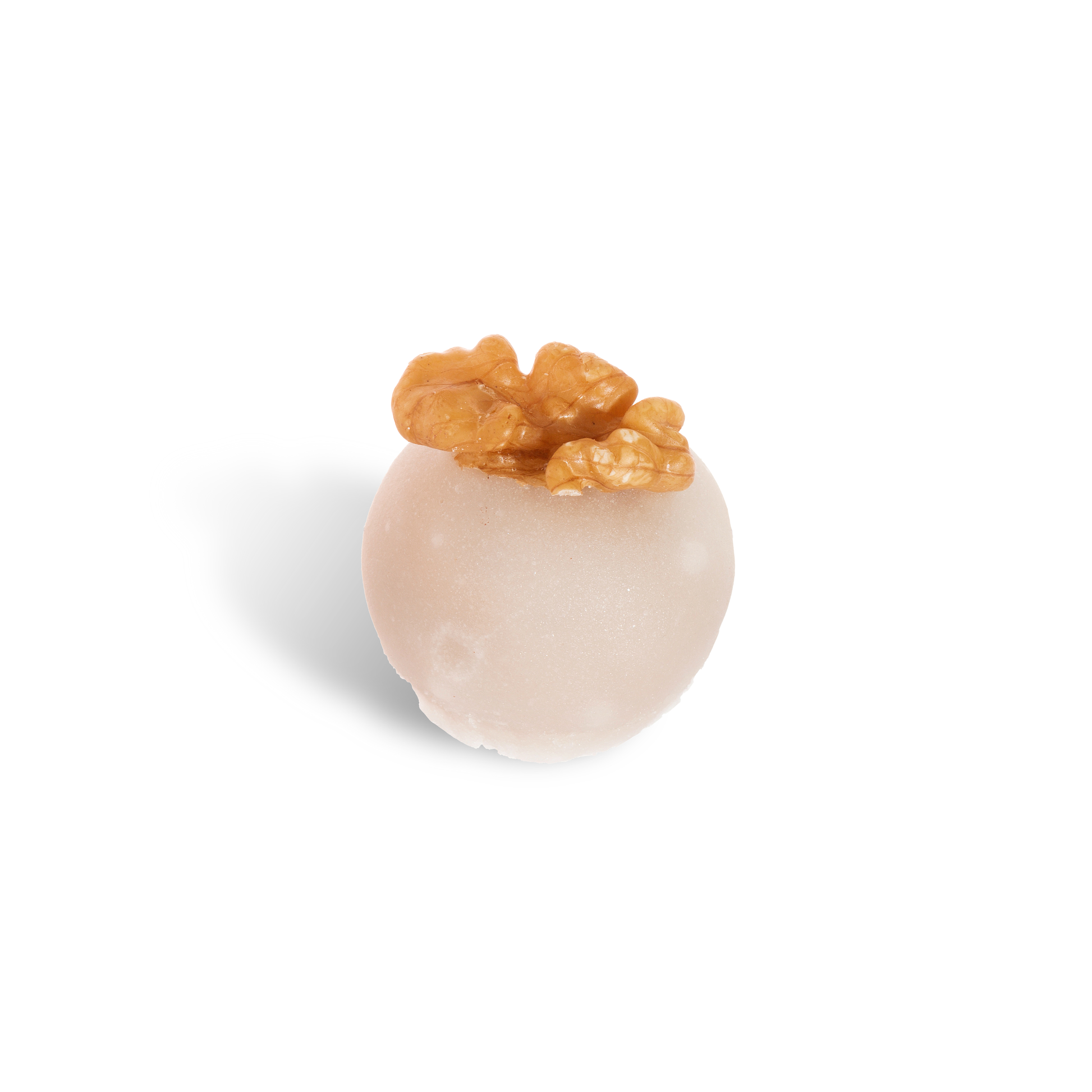 CREME DE NOZES COM PEDAÇOS ENVOLTO DE FINA CAMADA DE GLACUCAR E NOZES.