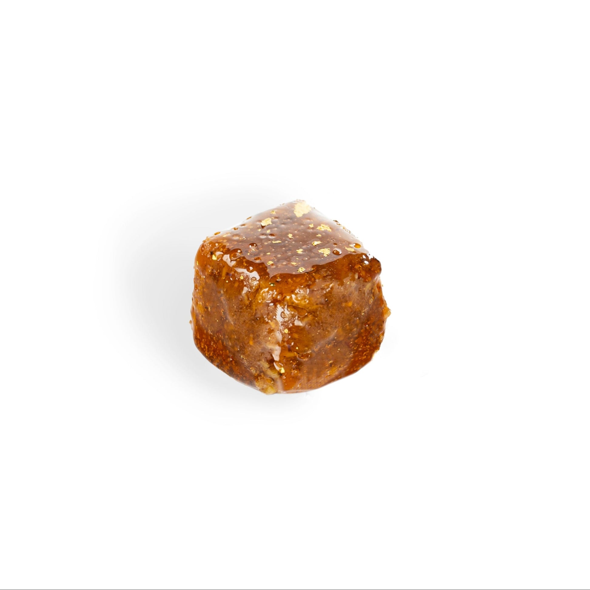 CREME DE CARAMELO COBERTO COM GRÂNULOS DE NOZES PECAN CARAMELIZADAS.