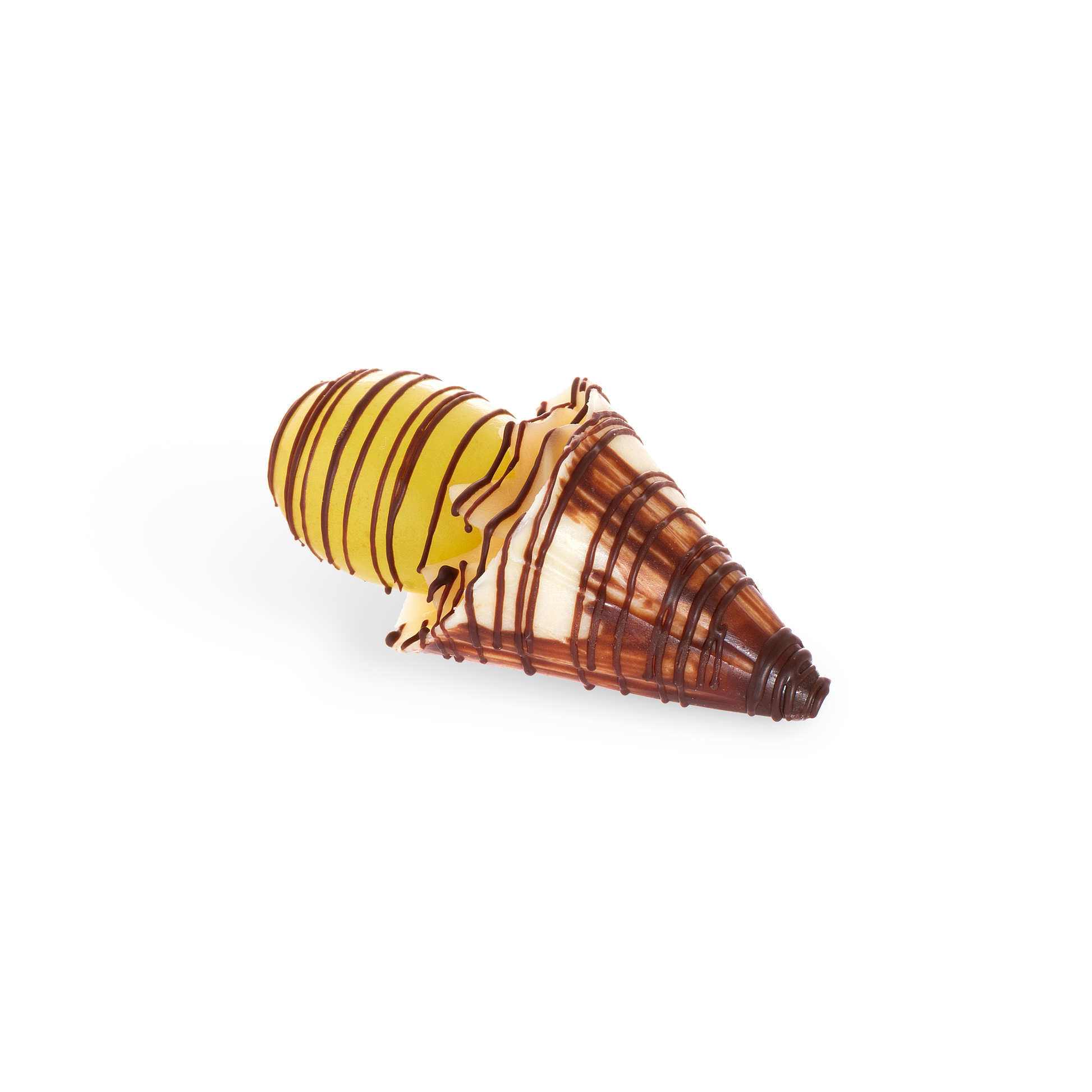 CAMADA FINA DE CHOCOLATE BRANCO E AMARGO RECHEADO DE CREME DE LEITE CONDENSADO E UVA SEM SEMENTE IN NATURA.