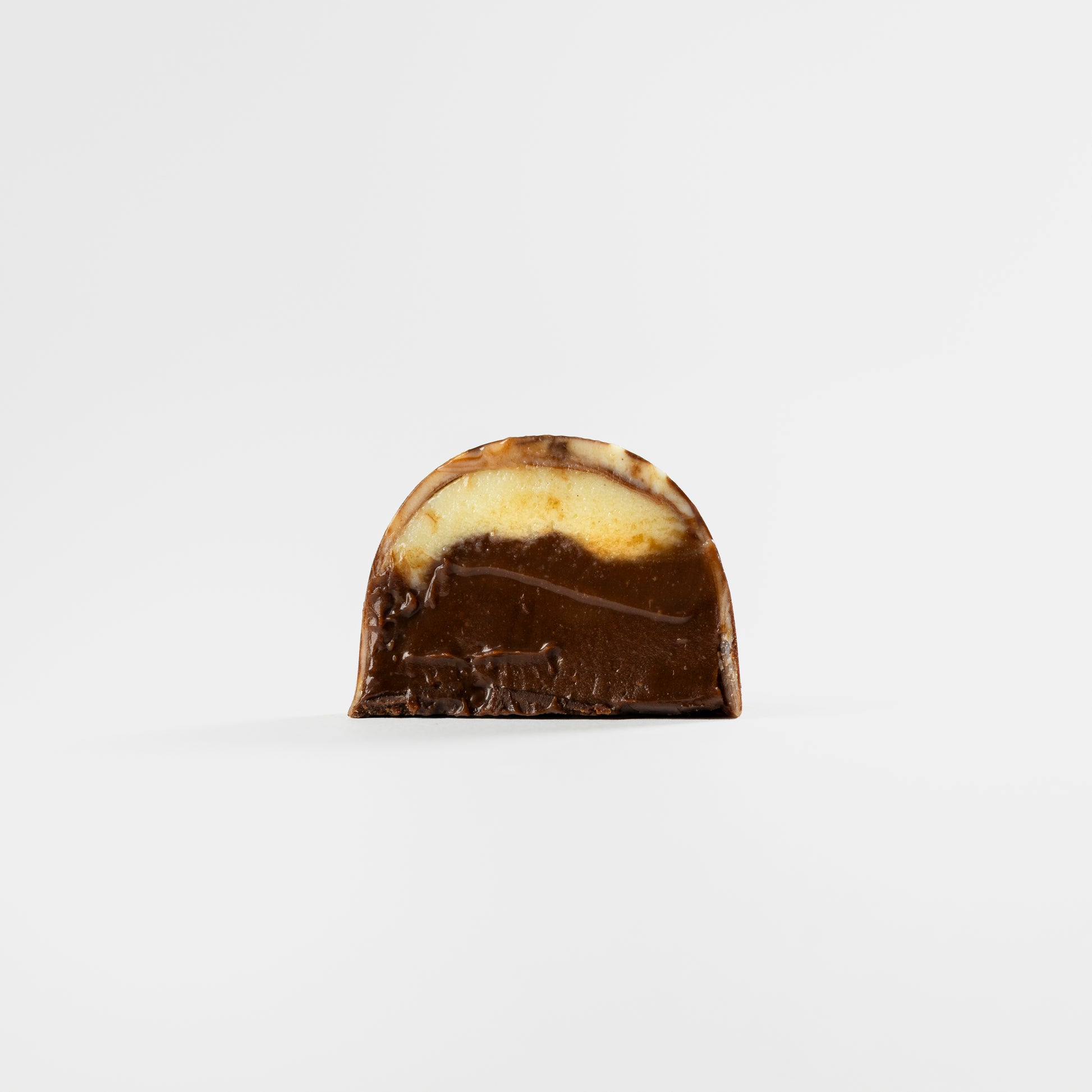 CASQUINHA DUO, GANACHE ENCORPADA DE CHOCOLATE BRANCO, AO LEITE E 70%